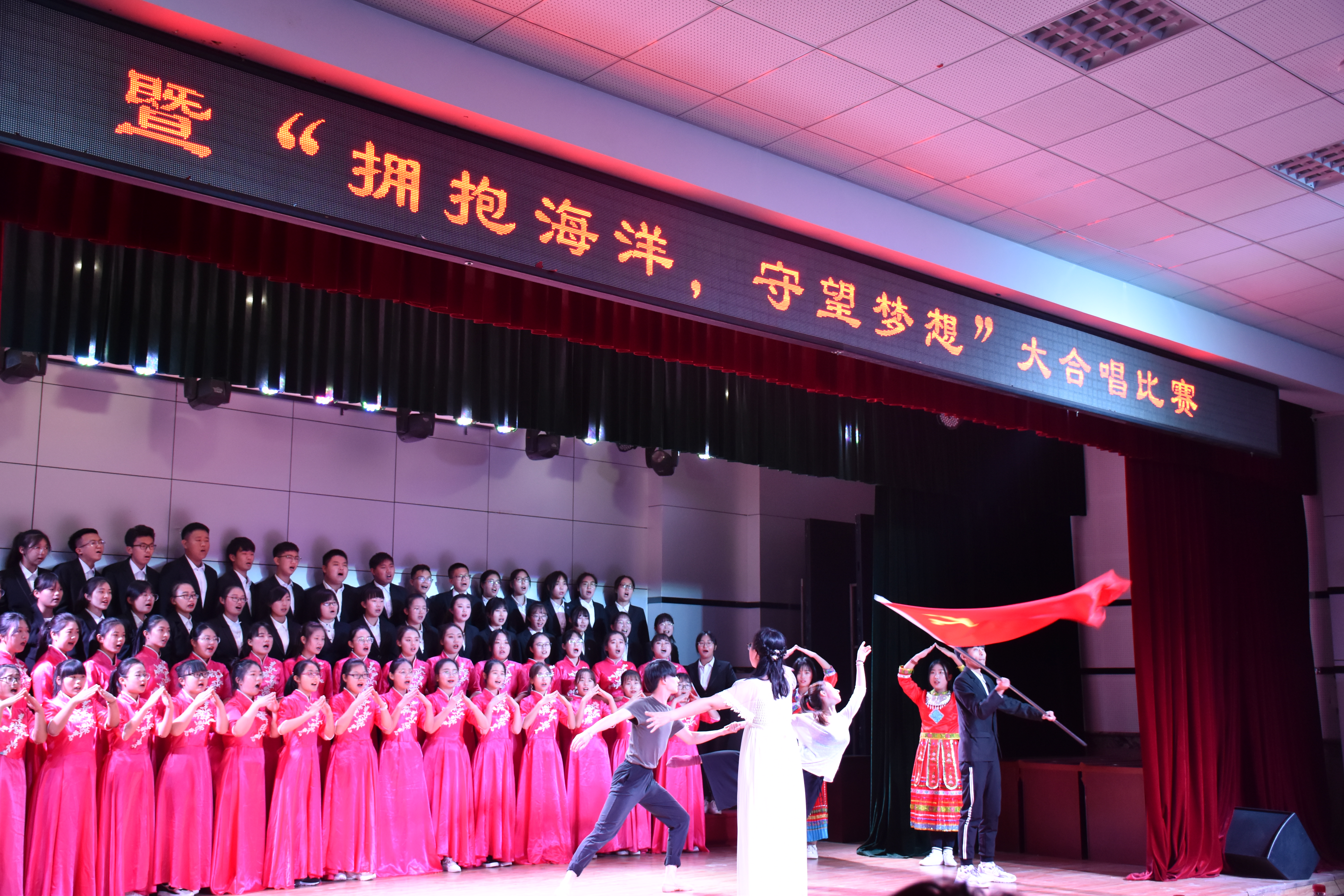 本次大合唱比赛的主题为“爱国爱校 红歌嘹亮”“拥抱海洋,守望梦想”。经过9个专业班级初赛选拔,本次进入决赛共有6个专业班级代表队,校歌《科技师院人之歌》为必唱曲目,自选曲目为歌颂党、歌颂祖国的红色歌曲和歌颂辽阔的海洋为主。在决赛过程中,每个专业班级的同学们个个精神饱满,斗志昂扬,嘹亮的歌声,整齐的队伍,热情的观众,展现了beat36518级新生的青春风采,激发了同学们爱国爱校的热情。经过比拼,最终计算机科学与技术专业180506班荣获一等奖;数学与应用数学18010203班荣获二等奖;数字媒体技术180102班荣获三等奖;计算机科学与技术180102班、应用统计学180102班、计算机科学与技术180304班荣获优秀奖。