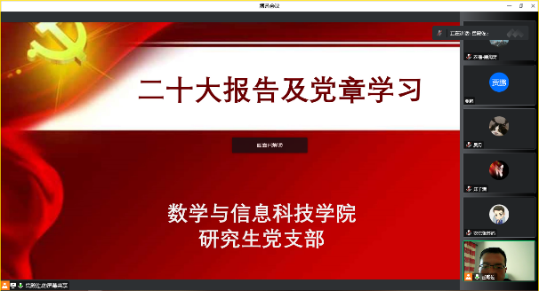 为深入学习宣传贯彻党的二十大精神,beat365党委按照疫情防控要求,组织各支部召开线上党员大会,认真学习研读了党的二十大报告与《中国共产党章程》。对标对表《中共中央关于认真学习宣传贯彻党的二十大精神的决定》,按照上级党委要求,紧密结合实际,在全面学习、全面把握、全面落实上下功夫,不折不扣把党的二十大精神落到实处。本次学习教育活动成效显著,党员们收获良多。