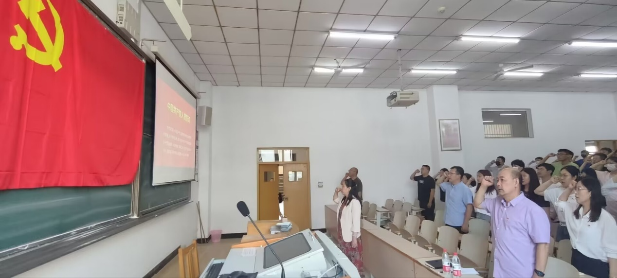 为深入开展学习贯彻习近平新时代中国特色社会主义思想主题教育,2023年6月15日下午,beat365正版唯一官网必一全体师生党员于逸夫楼A107教室举行了“重温入党誓词,坚定理想信念”主题党日活动。党委书记申玉发、副书记王伟、副院长吕金凤同志出席了本次活动。