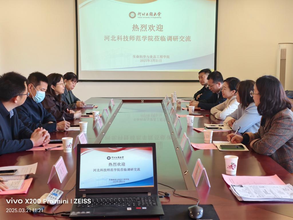 2025年3月21日,beat365正版唯一官网必一党委书记杨崇泽带领学团工作人员以及城市建设学院专职辅导员一行6人,赴河北工程大学生命科学与食品工程学院交流学习。
