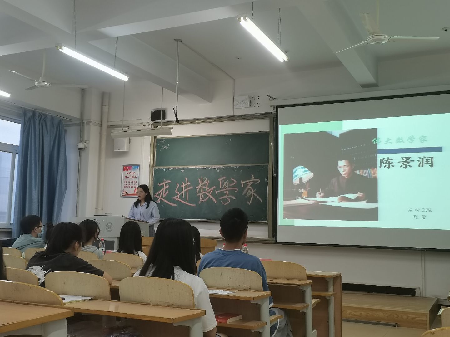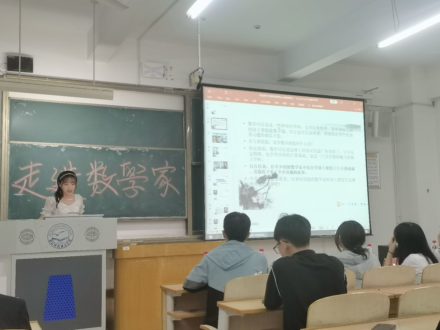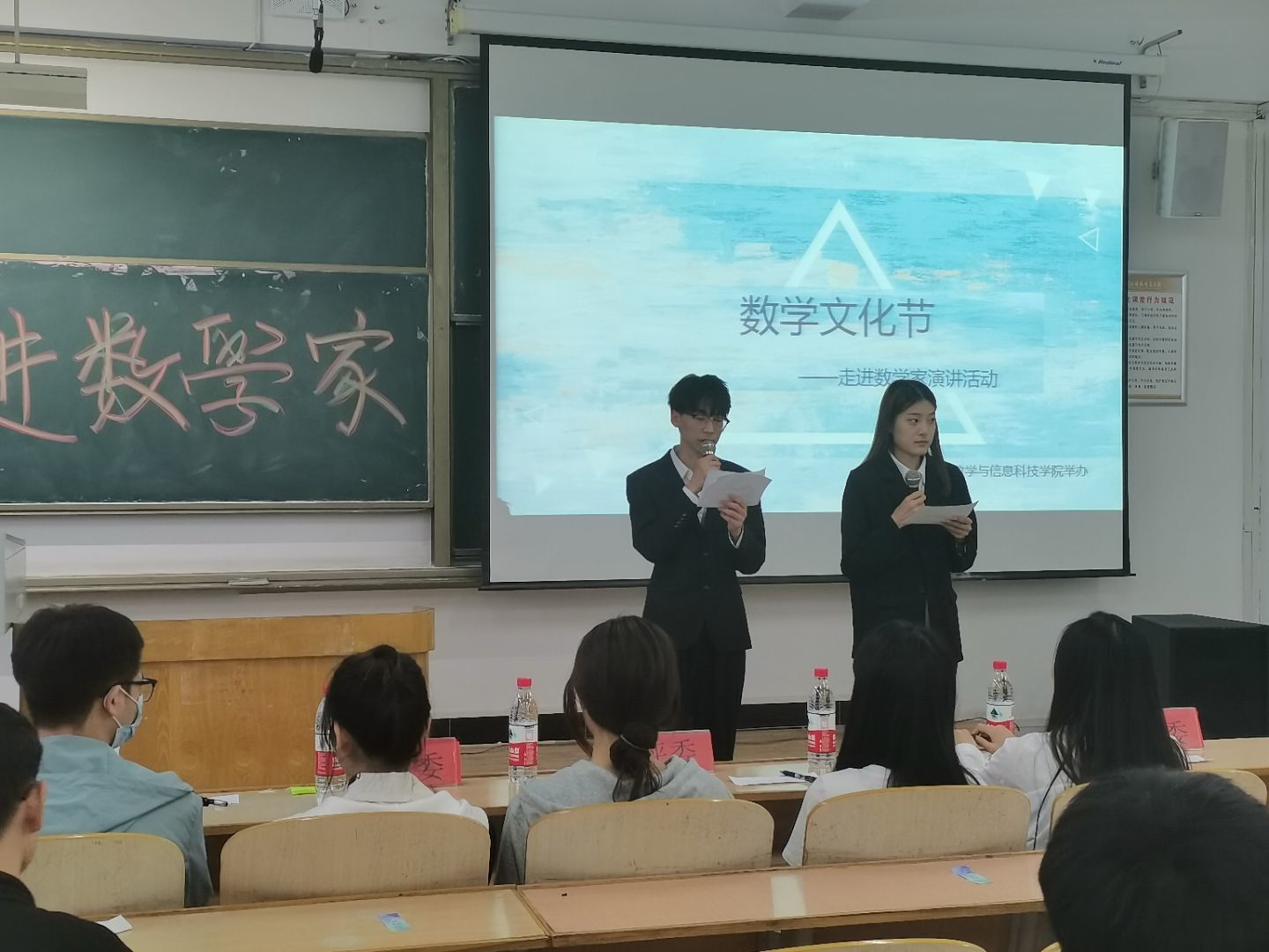 本次活动,以“传播数学文化,弘扬数学精神”为主题。进入决赛的有11位参赛选手。开展读数学家的人物传记书或者讲数学家的故事等。11位参赛选手结合ppt对数学家进行讲解。通过一个个与数学家有关的小故事,带领大家走进多彩的数学世界。