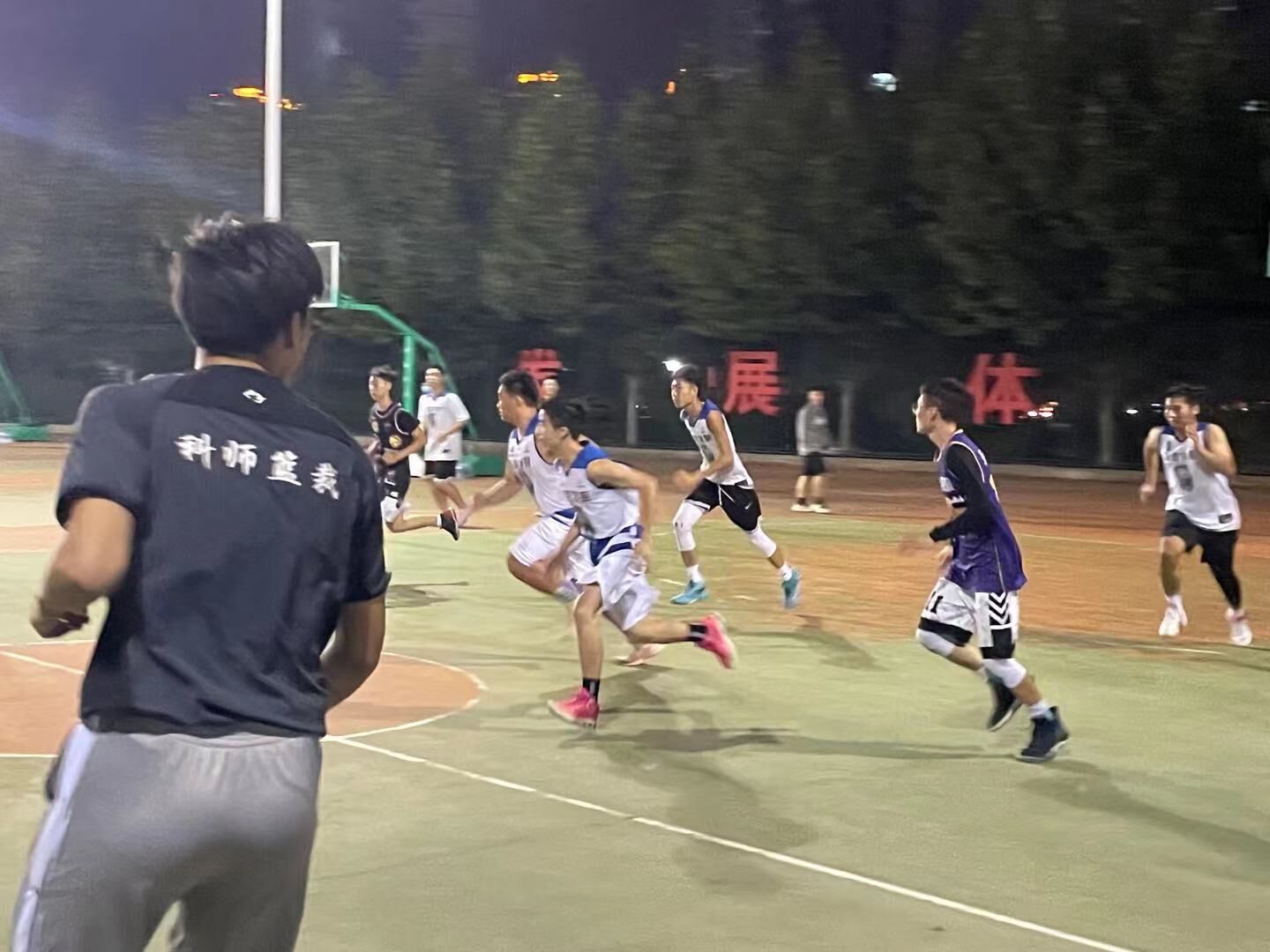 比赛初始,双方就展开了激烈角逐,比分交替上升,僵持不下。第二节一开始,球员们在其队长的带领下进取组织进攻,经过默契的合作,最终在半场结束时以微弱比分暂时领先。下半场比赛进入白热化阶段,两支队伍都咬紧牙关,尽力抓住机会。在啦啦队队员高昂的呐喊声中,比赛进入了最终的关键时刻,各个球员奋起直追,严阵以待。最终随着比赛结束哨音的响起,冠军诞生。比赛结束后,颁奖仪式在全场的欢呼声中拉开帷幕。双方队员丝毫没有赛场上紧张的气氛,毫无芥蒂的互相击掌拥抱,充分展现了友谊第一比赛第二的精神,“迎新杯”篮球赛在简便愉快的气氛中落下帷幕。