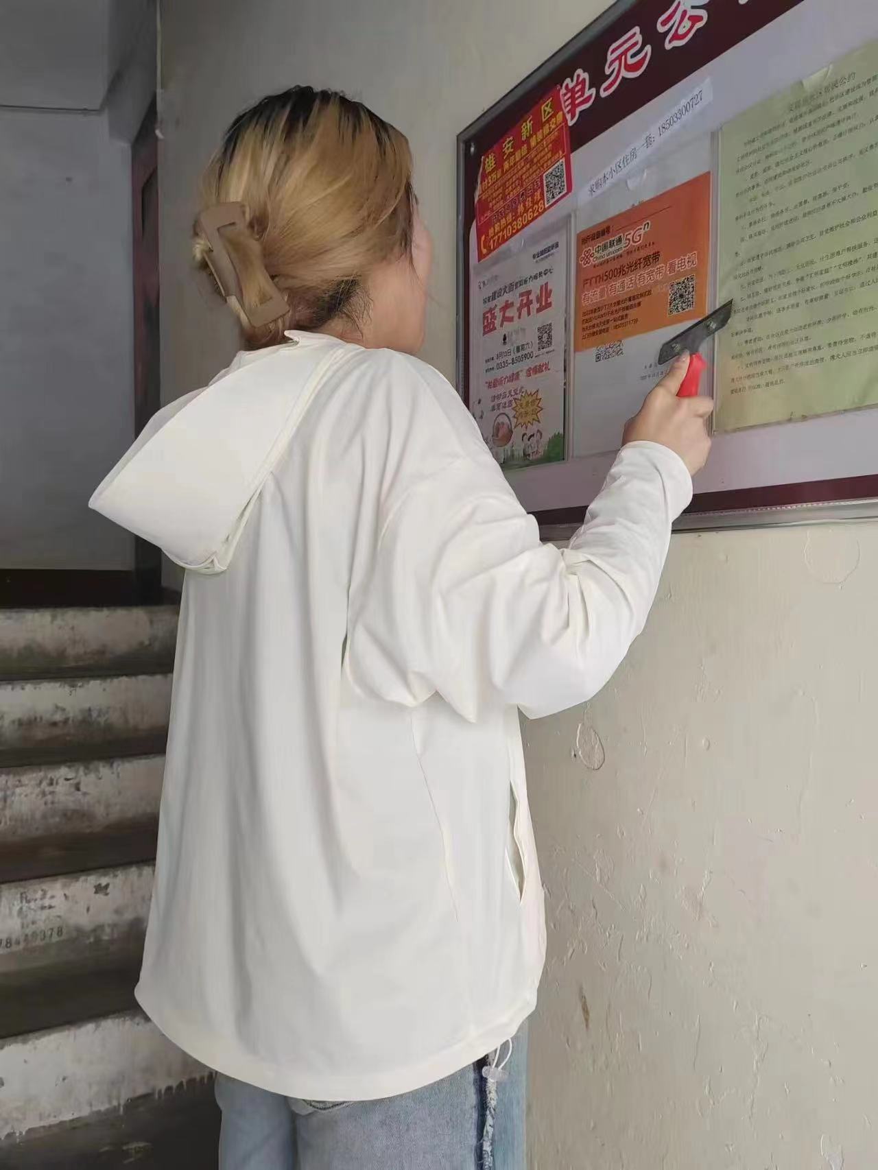2023年9月22日,beat365正版唯一官网必一计算机科学与技术2206团支部于在水一方社区开展了一次清除老旧小区广告的活动。