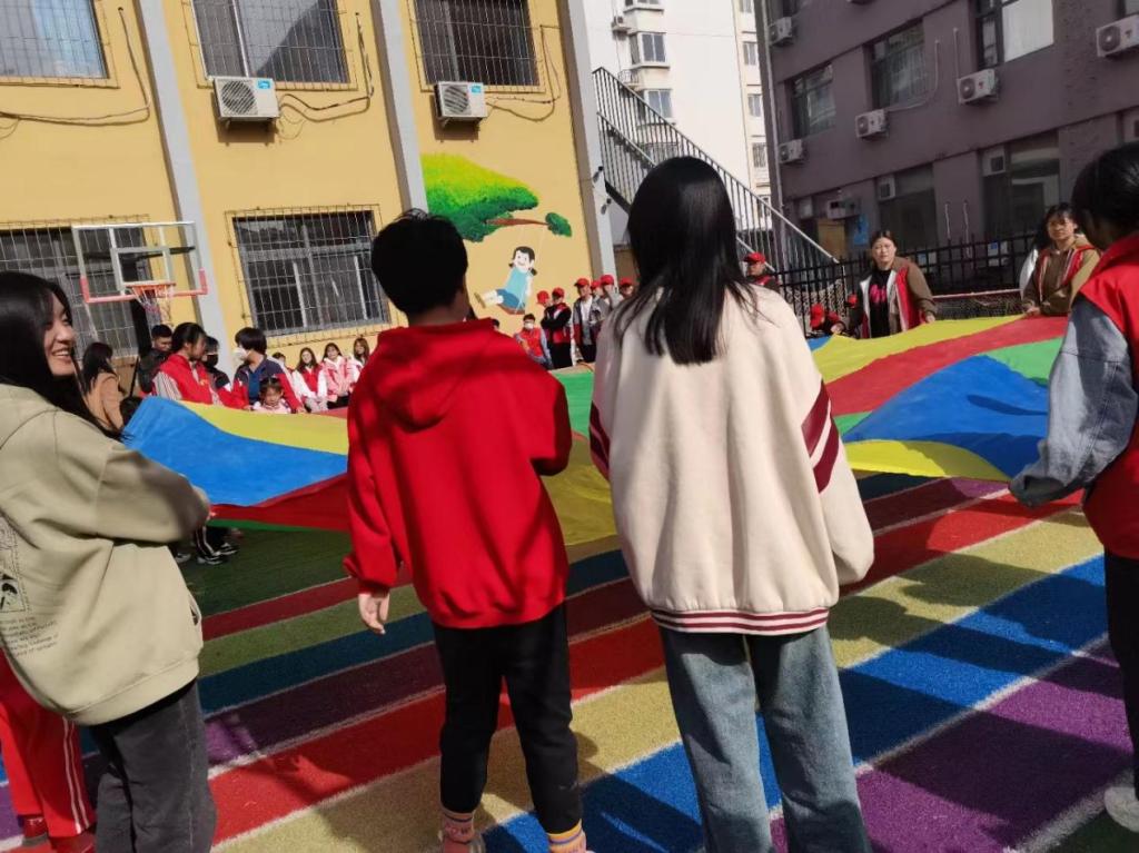 活动当天,由54名大学生组队结成的志愿者小队与小朋友们进行游戏,志愿者们尽可能多的与小朋友们进行言语上的沟通,带领他们玩耍,希望通过这次活动让他们变得开朗一些,更开心一些,也希望他们能够早日见证这个世界的多彩。