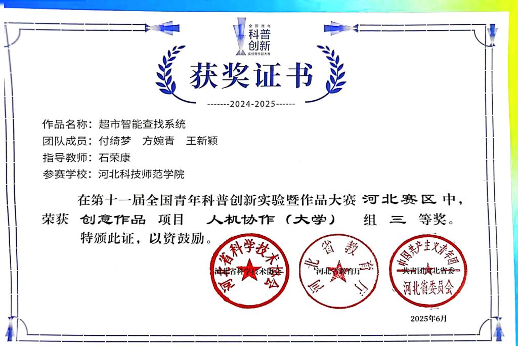 第十一届全国青年科普创新实验暨作品大赛河北赛区比赛由省科协、省教育厅与共青团河北省委联合主办,省科技馆、保定市科协与河北大学联合承办,近日圆满落幕。我院共有4个项目获奖。