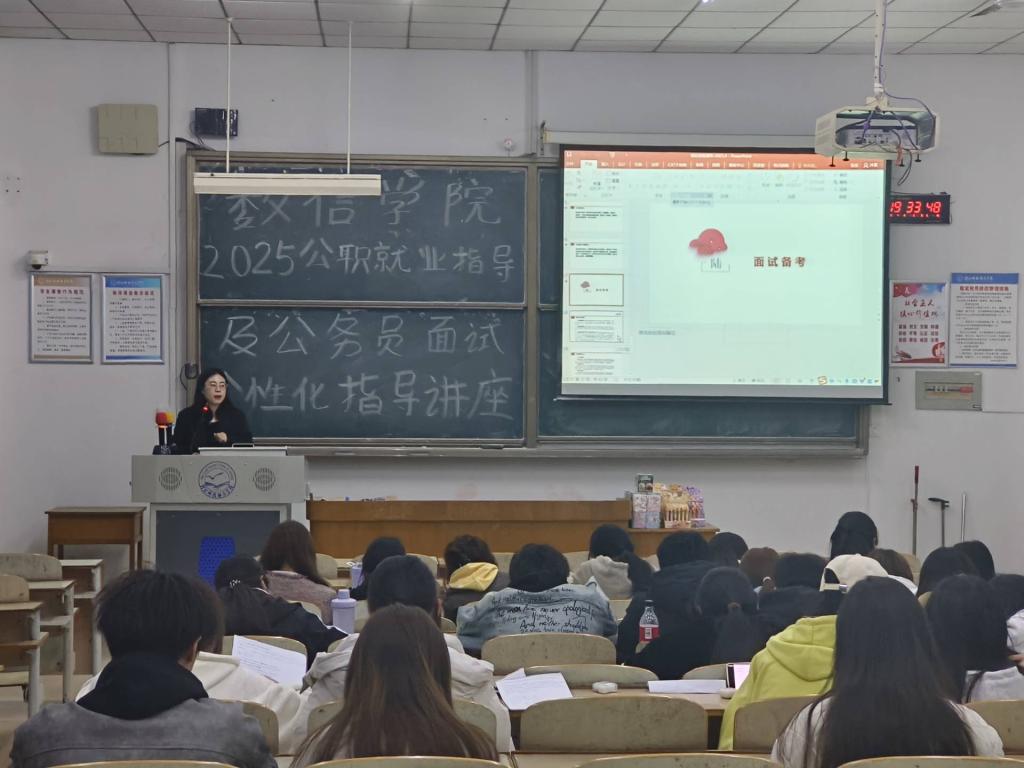 4月2日,在学校的A103教室,一场备受关注的“公职就业指导以及公务员面试个性化指导讲座”成功举办。众多怀揣着公职梦想的同学早早来到现场,大家都对这场讲座充满期待,渴望从中获取宝贵的经验与指导。