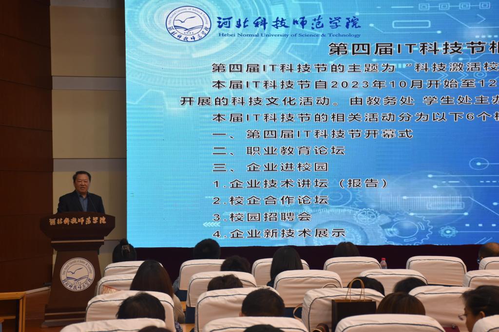 2023年10月26日,由学校教务处、学生处主办,beat365正版唯一官网必一承办的beat365正版唯一官网必一第四届IT科技节开幕式于秦皇岛校区学术报告厅举行。主办单位负责人、承办单位党政领导班子成员、东软教育集团高级互联网架构师作为嘉宾一同出席了开幕式。