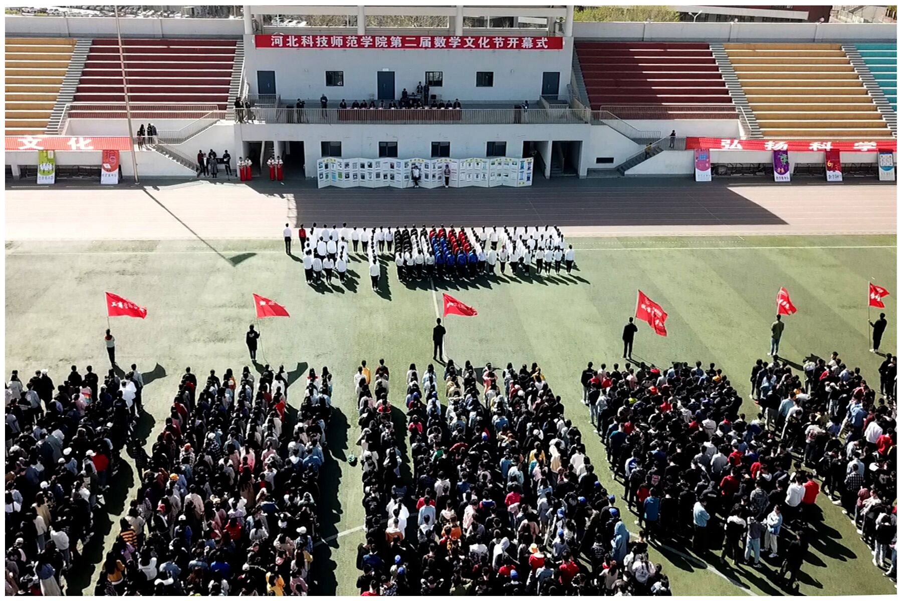 为传播数学文化,弘扬科学精神。由学校教务处、学生处、校团委、招生就业处主办,beat365正版唯一官网必一承办的学校第二届数学文化节开幕式活动于2019年4月14日下午,在秦皇岛校区运动场举行。学校副校长张福喜、主办单位相关负责人、承办单位党政领导班子成员以及秦皇岛校区的财经学院、城市建设学院、工商管理学院、体育与健康学院、物理系等各院系主管学生工作负责人出席了开幕式。另外,beat365教师以及秦皇岛校区六个系院的学生代表共1500余人一同参加了开幕式活动。