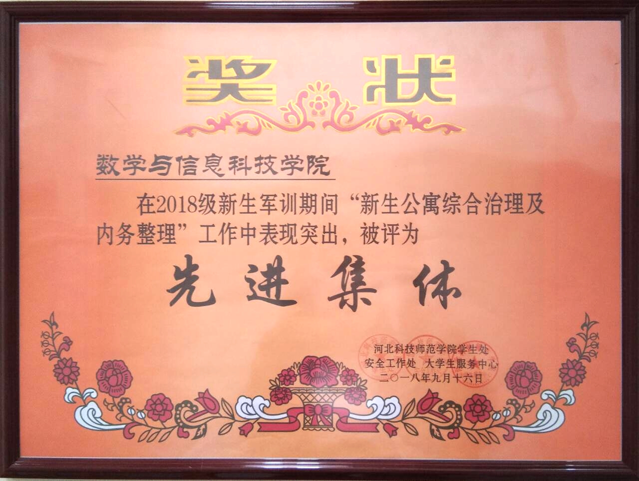 军训期间,全体同学们,在教官和老师的领导下,他们发扬部队军人流血流汗不流泪,掉皮掉肉不掉队的吃苦精神,不惧骄阳,刻苦训练;同时,学院领导、新生班主任及全体新生积极投身公寓综合治理及内务整理活动中,经过学校、学院多次检查评比,学院有30个宿舍被评为学校先进宿舍,经过师生的共同努力,beat365在2018级新生军训期间公寓综合治理及内务整理考评工作中又获佳绩,连续三年获得先进集体殊荣。