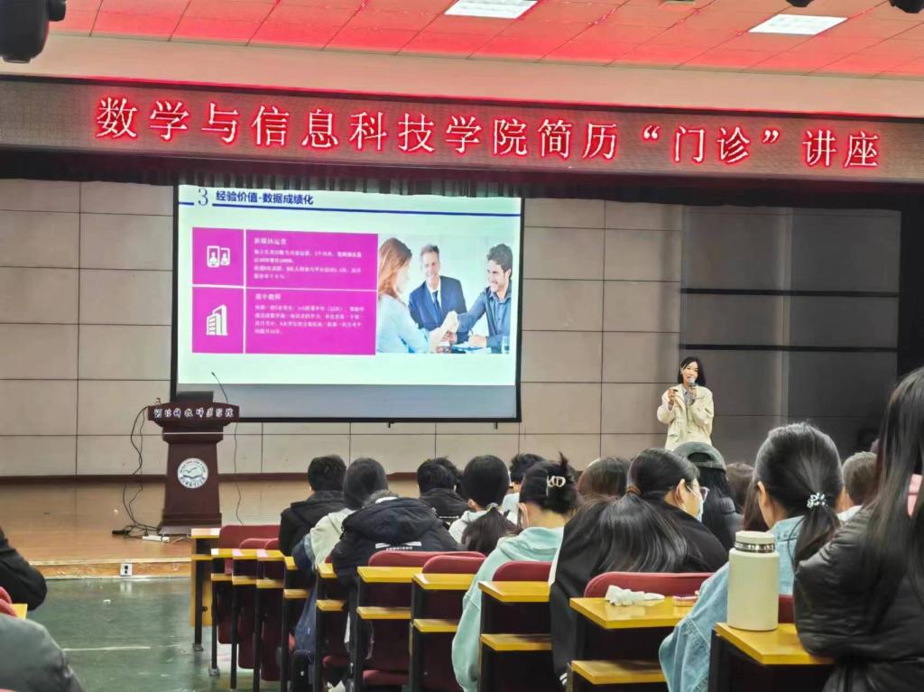 本次活动分为两个环节。第一环节,王娜老师围绕如何打造一份匹配且有竞争力的简历为毕业生们提供了一场内容丰富、实用性强的培训盛宴。讲座就简历的撰写原则、简历的制作思路、制作求职简历的技巧等方面多角度进行讲解和分享,为简历开出“良方”。第二环节,开设“简历门诊”,对参会同学备好的简历进行一对一的指导,提升学生构建简历的思维能力和就业竞争力,增强就业信心。