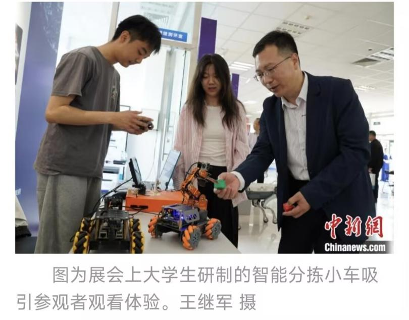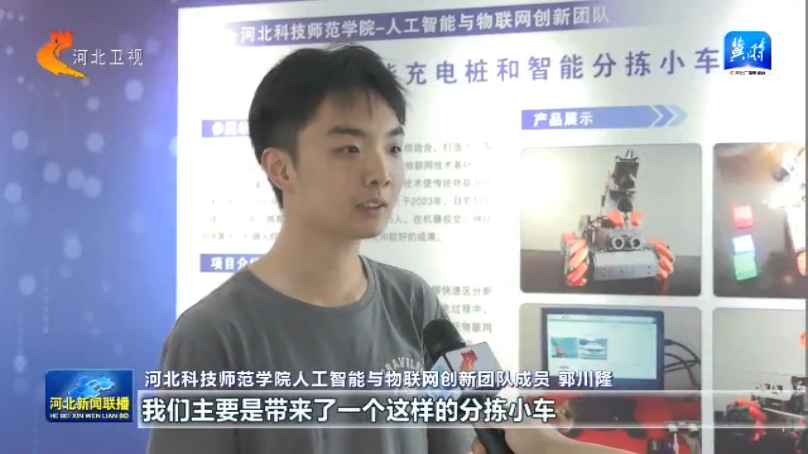 为促进人工智能领域的技术交流与成果转化,推动产学研深度融合,5月28日至30日,2025年京津冀人工智能+人才科技成果展在河北秦皇岛经济技术开发区隆重举办。beat365正版唯一官网必一人工智能创新团队携“智能充电桩”和“智能分拣小车”两项成果参加成果展。展会期间,智能分拣小车凭借其高效的识别分拣能力和创新的应用场景设计,吸引了众多参观者驻足体验和咨询。中国新闻网、河北卫视对学院师生进行了采访报道。