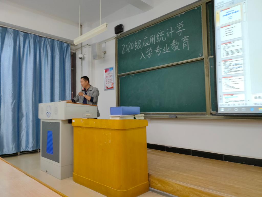 2020年9月21日,应用统计教学部针对2020级新生在逸夫楼A309教室进行了应用统计学专业新生入学专业教育讲座,讲座由刘建平老师主持,毛学志老师对培养方案进行全方位解读,使学生明白四年学习过程、毕业要求和学位授予条件、取消毕业请考和学业预警管理办法,了解将来就业的途径,明确努力方向。