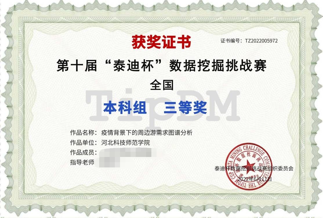 第十届“泰迪杯”数据挖掘挑战赛于2022年2月-7月举行,为激励应用统计学专业学生学习数据挖掘的积极性,以及分析、解决实际问题的综合能力,应统专业老师带领学生参加此项比赛,并取得2项国家级三等奖、1项省级二等奖、2项省级三等奖。