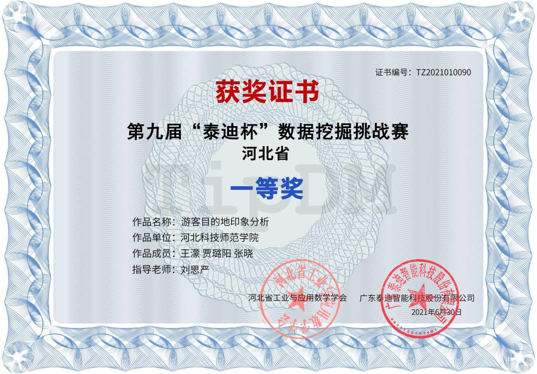 近日,第九届“泰迪杯”数据挖掘挑战赛河北省省级奖项揭晓,beat365应用统计学专业学生获得一等奖1项、二等奖2项、三等奖2项的好成绩。