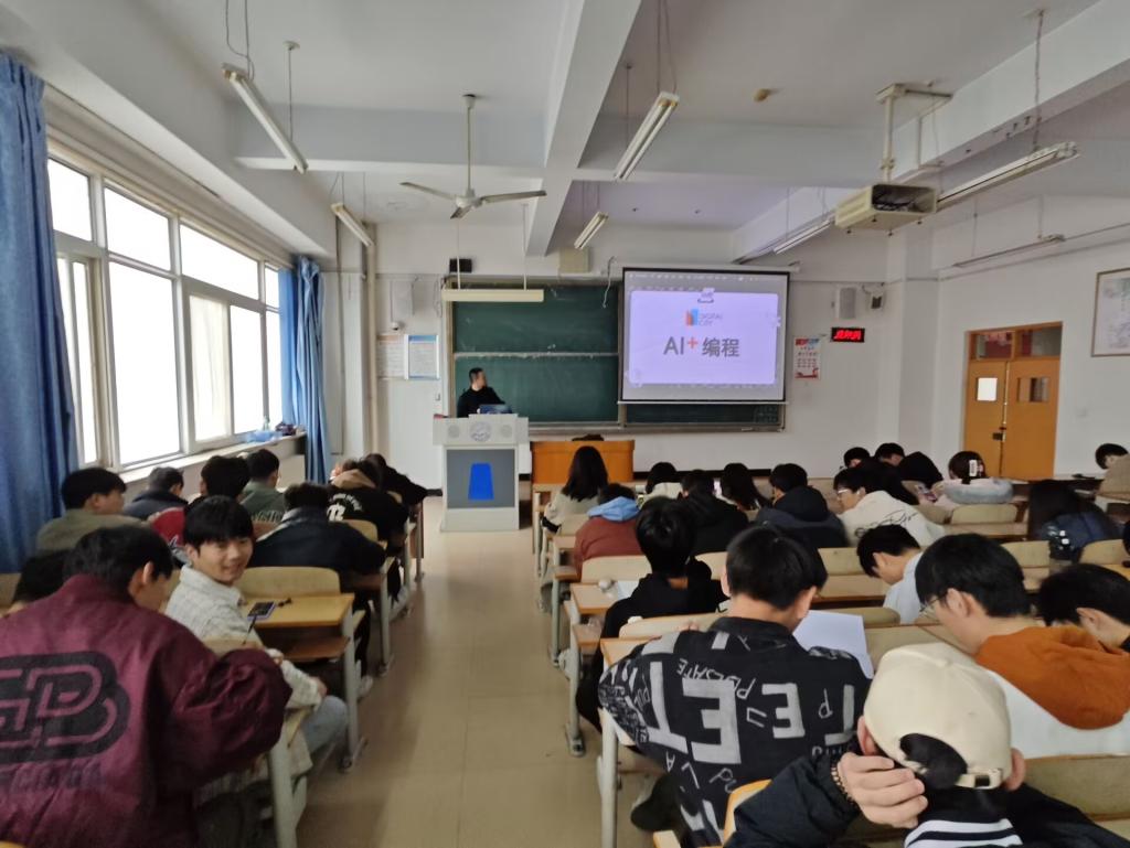 创新创业周周二(2024年10月22日)下午计算机科学与技术2301-04班120名学生在逸夫楼A209教室聆听了第嘉文化传媒有限公司教师给大家带来的AI编程技术应用解析讲座。