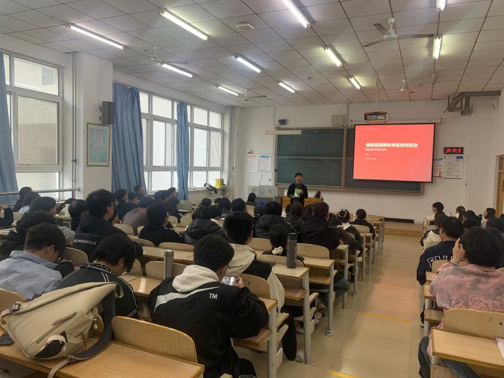 创新创业周周五(2024年10月25日)上午8:00-10:00计算机科学与技术2401-03班91名学生在X104教室聆听了北大课工场公司教师给大家带来的做新互联网未来该如何就业讲座。